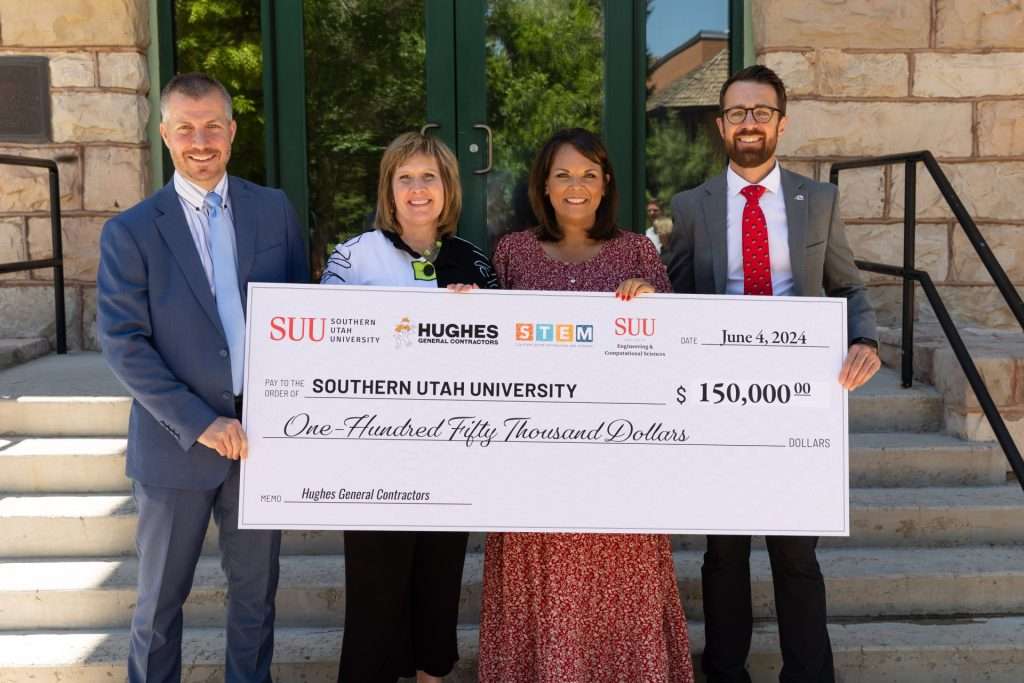 Two programs at Southern Utah University were the beneficiaries of a generous donation from Hughes General Contractors at a campus ceremony on June 4. The $150,000 contribution from the Utah-based company was presented to SUU’s STEM Center and Construction Management program in an effort to cultivate interest around engineering and construction from an early age and support college education.